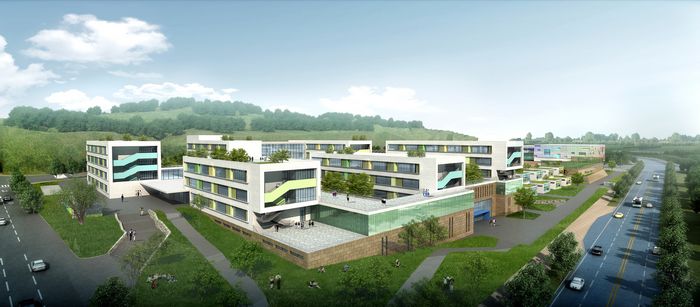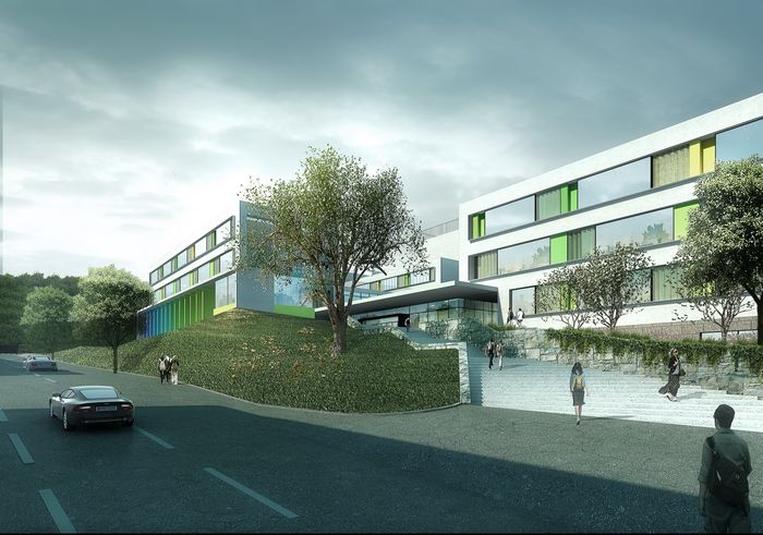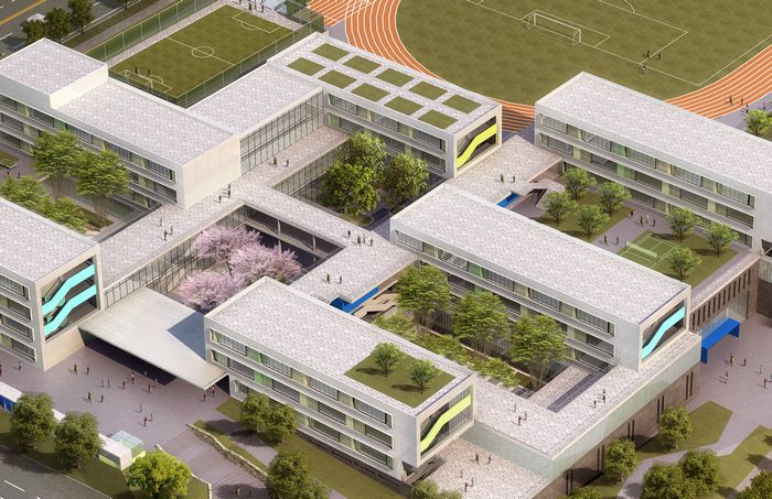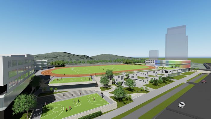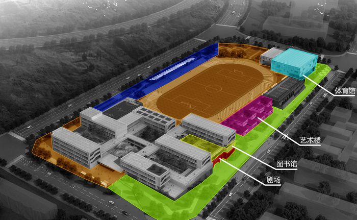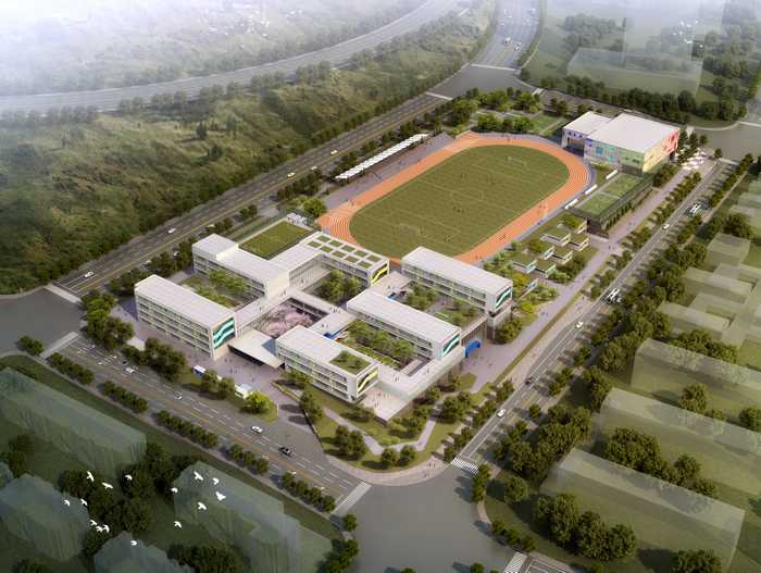 巧用地形,依势而建,观山瞰海。与“城市绿轴”南北呼应,与周边环境融为一体,着力打造全国一流水准的现代化、智慧型、花园式地区标杆学校。