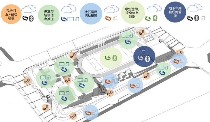 师生、居民通过手环等智能穿戴设备,实现私人定制功能区域的无障碍通行。信息实时共享,数据智能分析,实现随时随处的个性化学习。电子围篱、智能楼宇,实现学生运动、安全信息的实时检测管理。