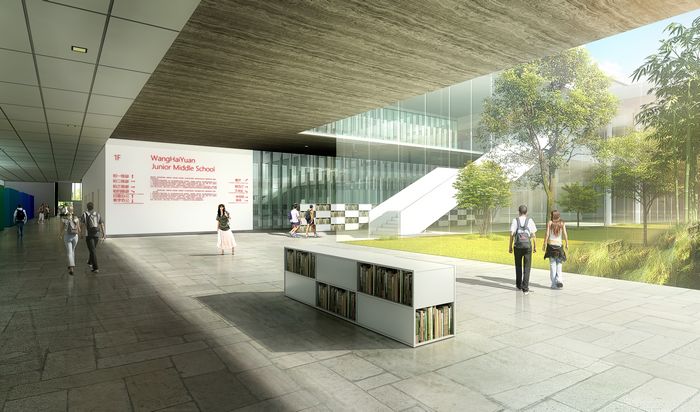 校园被绿丘包裹,似在园林中。建筑2-3层,立体联动,多重路径、层层通达,实现高效率交通组织,全天候风雨无阻。“屋顶绿坡”拓展师生活动空间,与地面庭院相结合,让师生学习生活处处亲近自然。