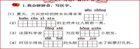 2.细节关注不够到位。比如:基础知识第5小题,例字中应该先出示“奶牛 牛奶”然后再出示例句就更好了,还有例句,应该再严谨一些。
